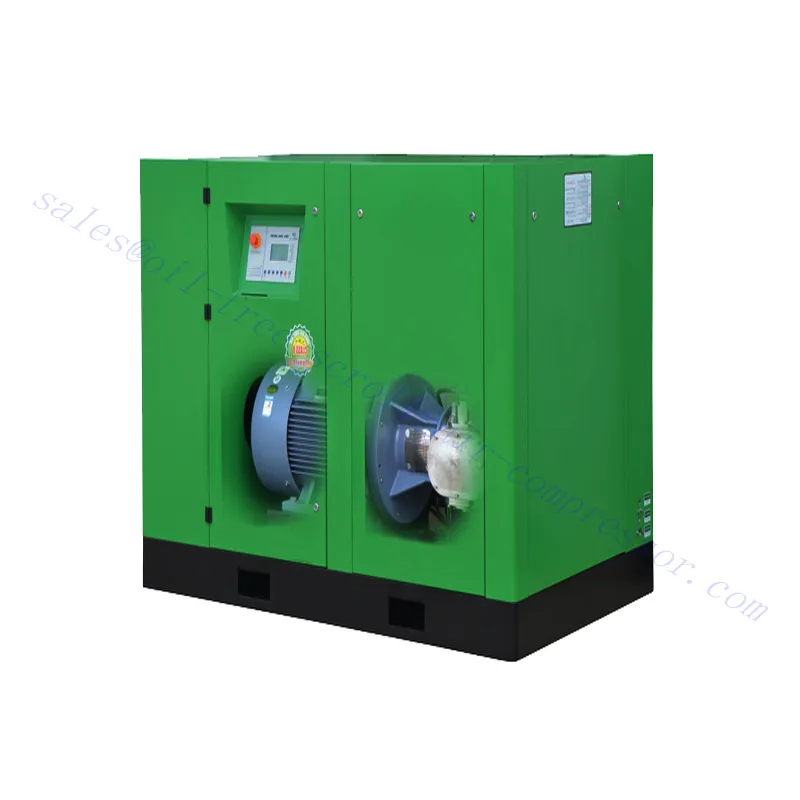 An oil-free scroll air compressor is an air compressor that does not use oil to lubricate its moving parts. This type of compressor is commonly used in applications where oil contamination cannot be accepted, such as food and beverage processing, medical applications, and pharmaceutical manufacturing.